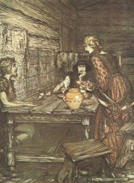 Hunding, Sieglinde y Siegmund . Arthur Rackham
